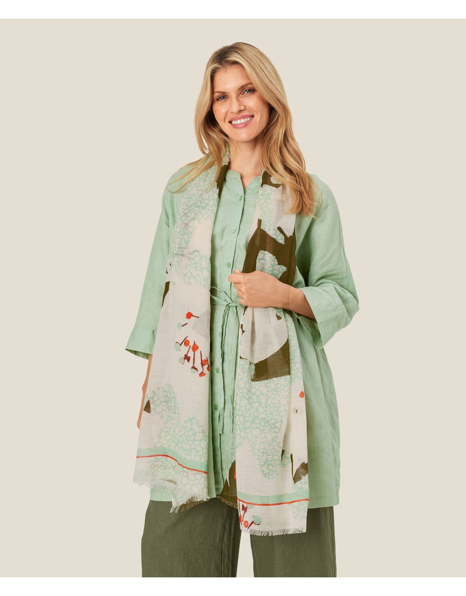Capture attention with this beautiful scarf featuring an artistic print. Crafted from a soft blend of modal, cotton, and linen, it drapes effortlessly and comfortably over the body. Hang it casually around your neck, wear it as a shawl, or drape it over one shoulder. It can do it all!